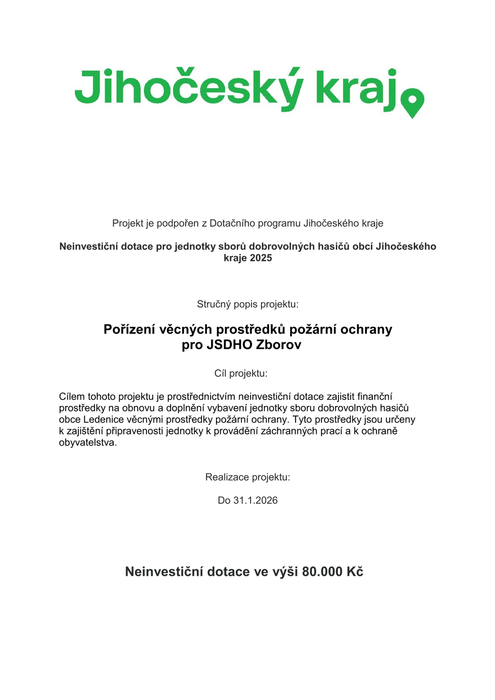 Úvodní stránka > Dotace - EU > Pořízení věcných prostředků požární ochrany pro JSDHO Zborov